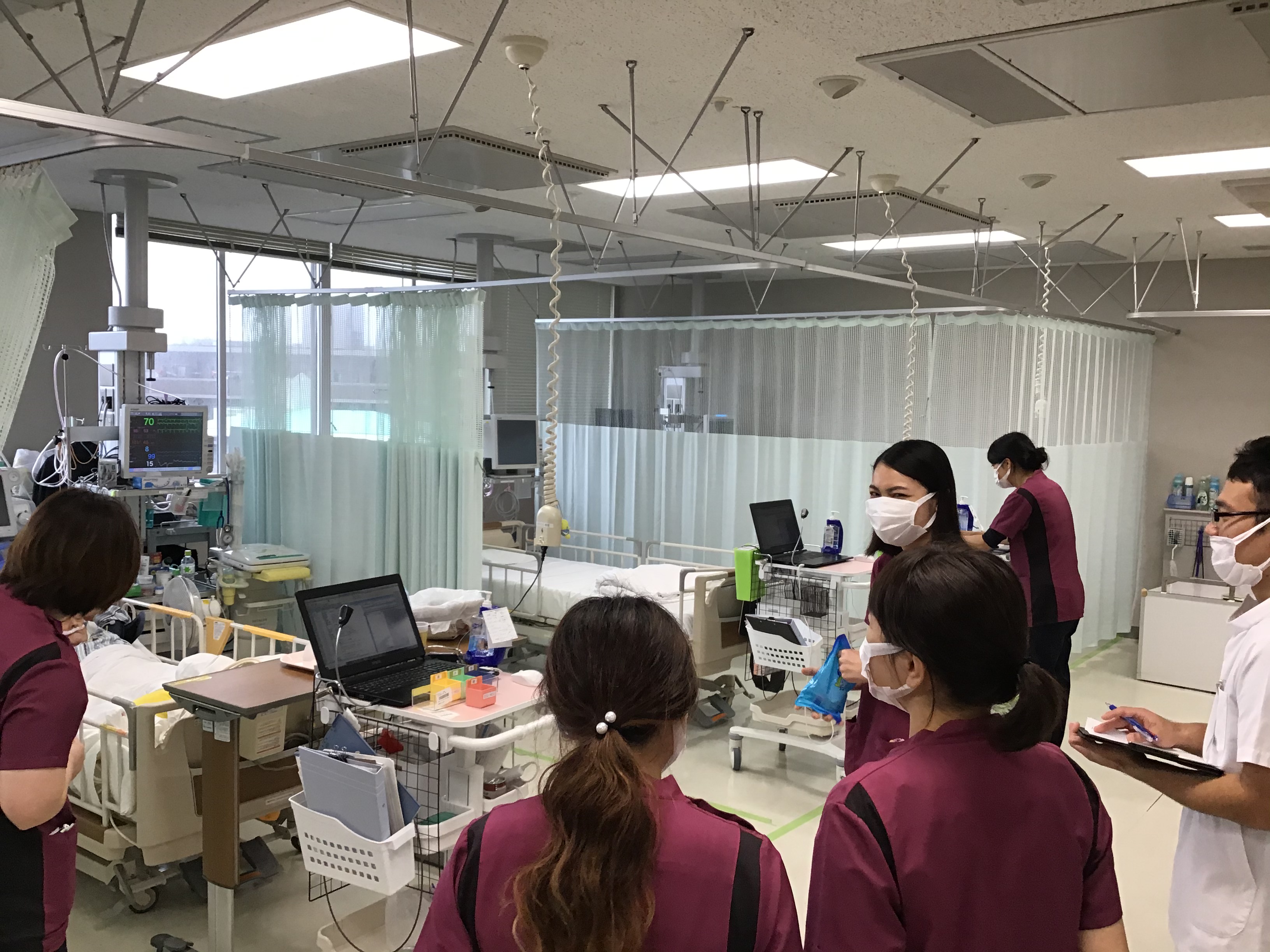 当院の急性期病院としてのリハビリテーションの役割は、入院患者様の寝たきり予防、日常生活動作(以下Activities of Daily Living:ADL)の自立度を高めることです。そのため入院患者様に共通するのは入院早期からのリハビリテーションの介入が重要になります。 高齢化社会がすすみ、入院前よりADLの低下がみられる患者様が多く、病気や怪我による治療と並行して筋力低下や認知機能低下(廃用)の進行予防が予後を左右します。 平成30年4月からICUでも入院後早期にリハビリすることが認められ診療酬が改定されました。当院では平日に多職種協働によるICUカンファレンスを実施し、安静や鎮静レベルに応じて確かなリスク管理の下で積極的な早期離床を実施しており、それが身体機能だけでなく認知機能低下を予防し退院後の自立度の高い生活につながると考えています。